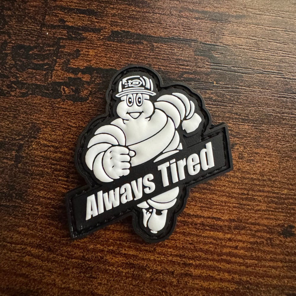 " Always Tired " Single patch black and white color and 1 random slap. Patch is approximately 2”. With all these holidays, shopping, and parties. Most of us will be always tired for a couple months. Let’s wear this patch like we earned it for doing all them things . We are not responsible once your package has been shipped .Quantities are limited and cannot be replaced. Other patches in picture are not included, only shown for badass carry example.